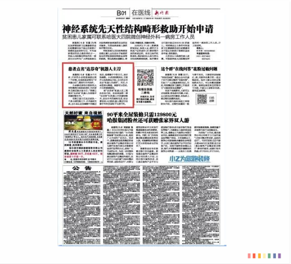 據(jù)《新晚報》2019年8月8日第B01版報道,27歲的患者小卓(化名)發(fā)現(xiàn)頸部有腫物,當(dāng)?shù)蒯t(yī)院診斷為“甲狀腺占位”,需進行手術(shù)治療。該患者來到哈爾濱醫(yī)科大學(xué)附屬第四醫(yī)院就診點名希望使用達芬奇機器人進行甲狀腺切除手術(shù)。在主任陳之顯及其團隊一個多小時的努力下,手術(shù)順利完成。這是我國首例“達芬奇”Xi機器人甲狀腺切除術(shù),這臺手術(shù)的順利完成,標(biāo)志著哈醫(yī)大四院機器人微創(chuàng)甲狀腺手術(shù)在全國處于先進行列。
