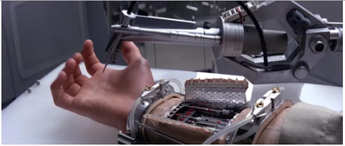 影視作品《星球大戰(zhàn)—帝國反擊戰(zhàn)》中,盧克·天行者斷臂后曾安裝過一款高科技假肢,圖片呈現(xiàn)的是機器對手臂進行意識感知測試,而現(xiàn)在它終于成真了