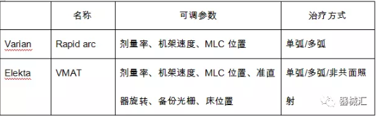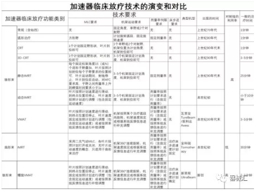 下表主要是關于錐形束加速器臨床技術的發(fā)展演變情況。