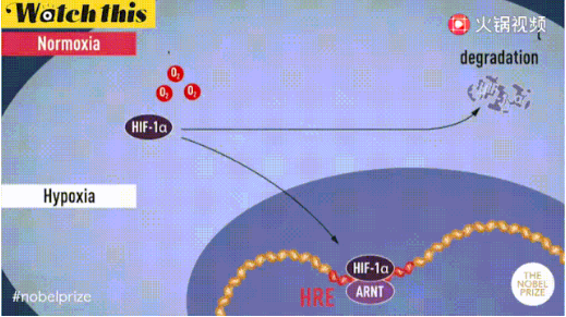 獲獎?wù)咧坏腟emenza教授在培育的肝細(xì)胞中發(fā)現(xiàn)了一種蛋白質(zhì)復(fù)合物以一種氧依賴性的方法與已判定出的 DNA 片段結(jié)合,開啟某些基因的表達(dá)。他稱這種復(fù)合物為缺氧誘導(dǎo)因子(HIF),是一個轉(zhuǎn)錄因子。HIF蛋白在低氧氣濃度時會積累,使細(xì)胞開啟應(yīng)對低氧環(huán)境的系列基因表達(dá);而在氧氣濃度高的時候,HIF會發(fā)生羥基化,然后該因子被泛素蛋白酶體系統(tǒng)降解。如此,細(xì)胞可以通過感知氧氣并對HIF的調(diào)節(jié),實現(xiàn)對細(xì)胞中基因表達(dá)的控制,來應(yīng)對機(jī)體氧含量的變化。經(jīng)研究發(fā)現(xiàn) HIF 由兩種不同的 DNA 結(jié)合蛋白組成(即所謂的轉(zhuǎn)錄因子,現(xiàn)在稱為 HIF-1α和 ARNT)。