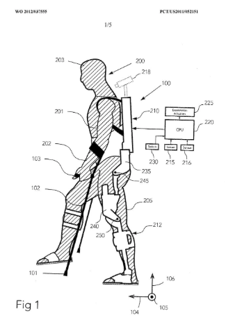 2010年,伯克利仿生研究所研制出的一種由電池提供動力的機(jī)械骨骼系統(tǒng)“eLEGS“。這是世界上第一款不使用繩或鏈達(dá)到自然行走目標(biāo)的外骨骼,使用者通過手臂姿勢控制,向前移動右拐杖,則左腿隨之向前移動,幫助截癱患者擺脫輪椅以自然步態(tài)行走。
