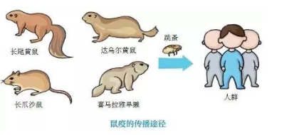 1.蚤叮咬的傳播方式為鼠-蚤-人,即跳蚤叮咬病鼠后再叮咬人,或剝取染疫旱獺皮或剝食其它染疫動物,此類傳播方式常引起腺鼠疫或敗血型鼠疫。