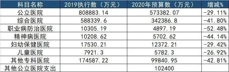 值得注意的是,在一般公共預算支出表中,國家衛(wèi)健委明確,2020年公立醫(yī)院的預算為573382.07萬元,同比2019年的執(zhí)行數(shù)減少了29.11%。