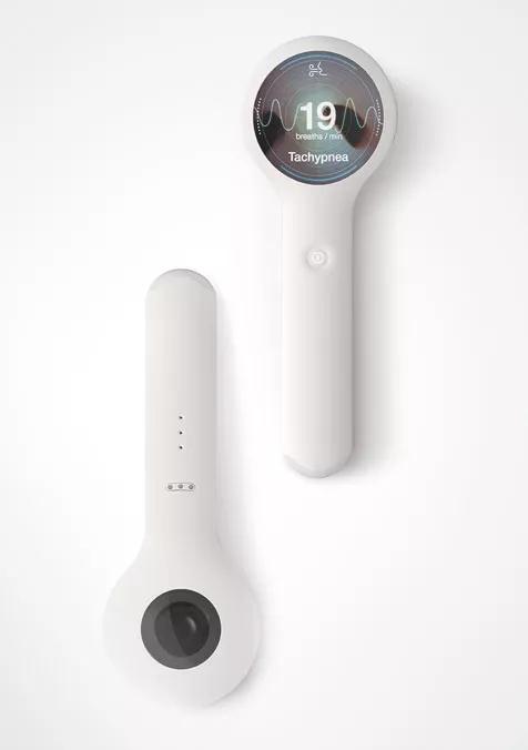 Dr. Loupe 的功能設計頗為下工夫,其下部有呼吸速率傳感器,裝置的上部有一個顯示監(jiān)視器,此外改設備還包括照相機,LED燈,虹膜識別紅外線傳感器和充電端口。充電座還可以投射一個屏幕,對患者的病史和當前診斷數(shù)據進行光束投射。