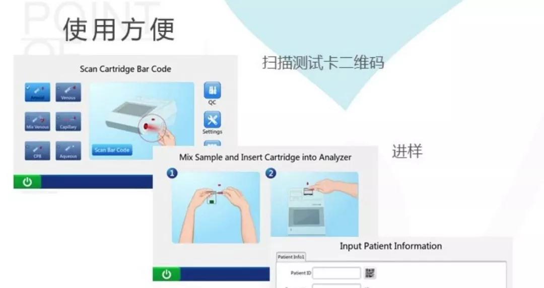但是現(xiàn)在,使用POCT診斷設備,在病人的身邊就能直接抽血化驗,2-3分鐘可得出檢測結果,醫(yī)生當場根據(jù)結果制定治療方案。