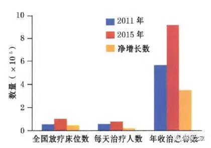 放療床位數(shù)、每天治療人數(shù)和年收治患者數(shù)增長情況