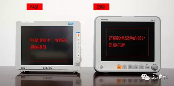 屏占比的概念來源于手機,用于表示屏幕和手機面積的相對值。一般來說,屏幕越大,屏占比也就越大??坡牵?45mm×185mm)/(305mm×230mm)=0.64;邁瑞為(185mm×245mm)/310mm×270mm=0.54。在屏占比方面,科曼比邁瑞高出了10%。屏幕大,屏占比大,儀器更精致??坡w積小,屏占比反而大,技術(shù)難度看起來更大,對技術(shù)的要求也更高。