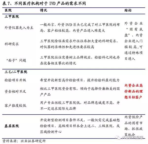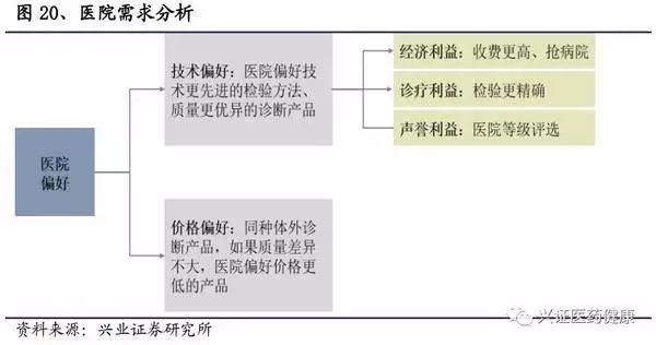 在進口替代的進程中,應(yīng)先分析終端的需求情況,以找準定位,獲得收益。醫(yī)院在選用儀器的時候,主要有技術(shù)偏好和價格偏好,不同級別的醫(yī)院考慮的優(yōu)先度會有所不同,所以對其分類討論以找準市場至關(guān)重要。