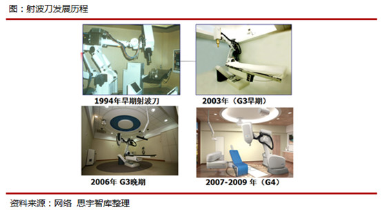 射波刀由斯坦福大學(xué)醫(yī)療中心腦外科及放射腫瘤學(xué)教授的John R. Adler研發(fā)。2001年,射波刀獲FDA準(zhǔn)許治療身體任何部位的腫瘤。射波刀無須使用金屬頭架或體架,它采用計算機(jī)立體定位導(dǎo)航和自動跟蹤靶區(qū)技術(shù),是新型的大型立體定向放射治療設(shè)備。