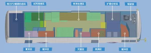 據(jù)公告顯示,圣湘生物移動P2+核酸檢測車長12米,按照生物安全二級以上(P2+)實驗室標準打造,設置了試劑準備區(qū)、樣本處理區(qū)、擴增分析區(qū)和滅菌區(qū)等四個主要區(qū)域。單臺車的檢測能力可達5萬人份/天(10混1),突破了以往檢測車的人次上限,并且可以隨到隨檢,大大縮短了民眾到醫(yī)院或核酸檢測點的距離,減少了就診過程中對人群的接觸。