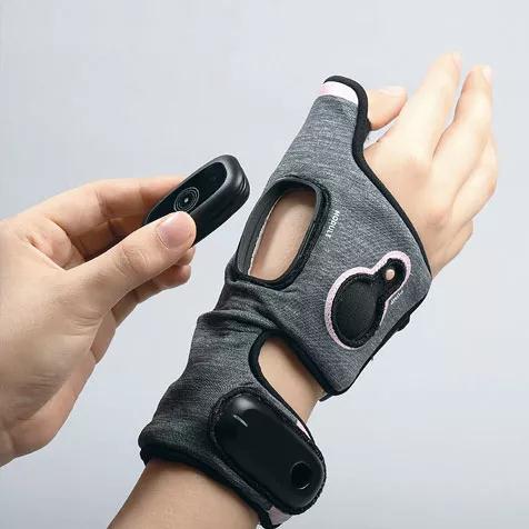 這是一款創(chuàng)新的手部保護裝置,專為慢性手部受傷及病癥設計。因受傷或者是長時間保持不良姿勢工作,導致手部出現(xiàn)持續(xù)性疼痛,已經成為現(xiàn)代生活中常見的病癥,HANDICARE 是一套針對觸發(fā)手指綜合癥的智能手部康復設備,它通過使用APP來檢測手部肌肉施加的力,進而激活可更換的電療(振動)模塊以緩解疼痛點。