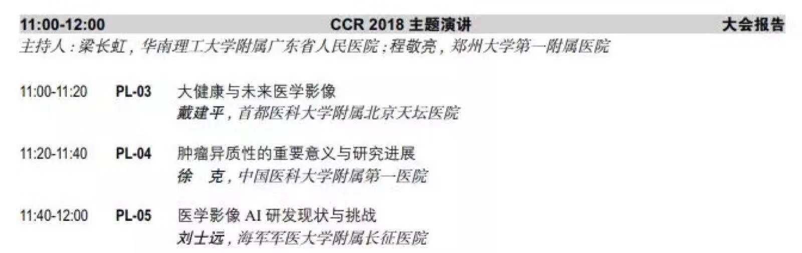 此外,11月8日的CCR2018主題演講中《大健康與未來醫(yī)學影像》和《醫(yī)學影像AI研發(fā)現(xiàn)狀與挑戰(zhàn)》也值得一聽哦~