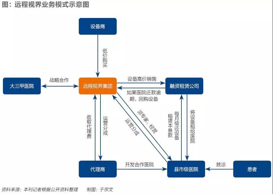 在遠(yuǎn)程視界官網(wǎng)上,其自我定位為“??七h(yuǎn)程醫(yī)療聯(lián)合體O2O平臺”。但一位前員工解釋說,其主要盈利模式就是做融資租賃。