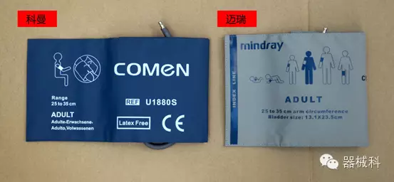 兩家都采用防水面料和薄膜氣囊??坡伾睿恢朗遣皇且驗樯钌团K。袖套看起來要厚點,不過摸起來也一樣柔軟。邁瑞是不經(jīng)臟的白色,拿起來會發(fā)現(xiàn)更柔軟。或許是深色顯得明亮,對比之下,總覺得邁瑞的袖套看起來舊舊的。