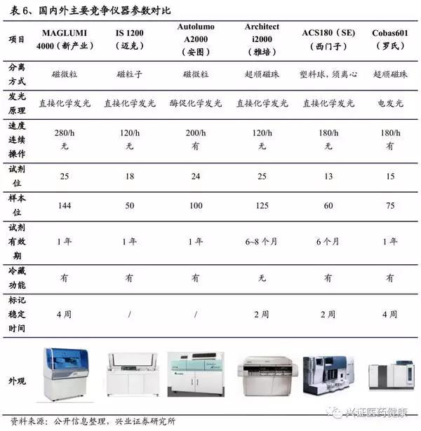 從以上進程可看出,技術(shù)到位、價格優(yōu)勢以及找準市場切入口是其完成進口替代的關(guān)鍵。發(fā)光行業(yè)與生化行業(yè)有其區(qū)別,發(fā)光本質(zhì)為免疫反應(yīng),各廠家的技術(shù)平臺完全不同,為保證結(jié)果的準確性和穩(wěn)定性,將迫使檢驗人員使用同一廠家提供的試劑和分析儀。在各大醫(yī)院對于各個項目的檢查都基本專機專用,未來也很難將其開放化。所以,在發(fā)光的進口替代進程中,試劑和儀器的一體化研發(fā)是必須的。國內(nèi)化學(xué)發(fā)光龍頭企業(yè),例如,新產(chǎn)業(yè)、安圖生物、邁克生物等都具備試劑和儀器的一體化研發(fā)能力。參考生化的替代道路,5年內(nèi)將爆發(fā)大規(guī)模進口替代。