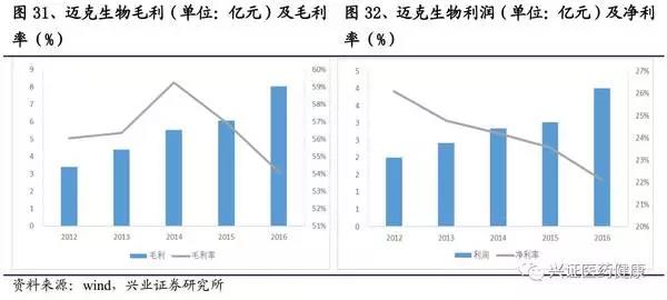 邁克2012年至2016年公司業(yè)績呈增長趨勢,2016年實現(xiàn)收入14.8億元,CAGR為24.5%,歸母凈利潤復(fù)合增速為21.2%,代理產(chǎn)品占收入的50%-60%。