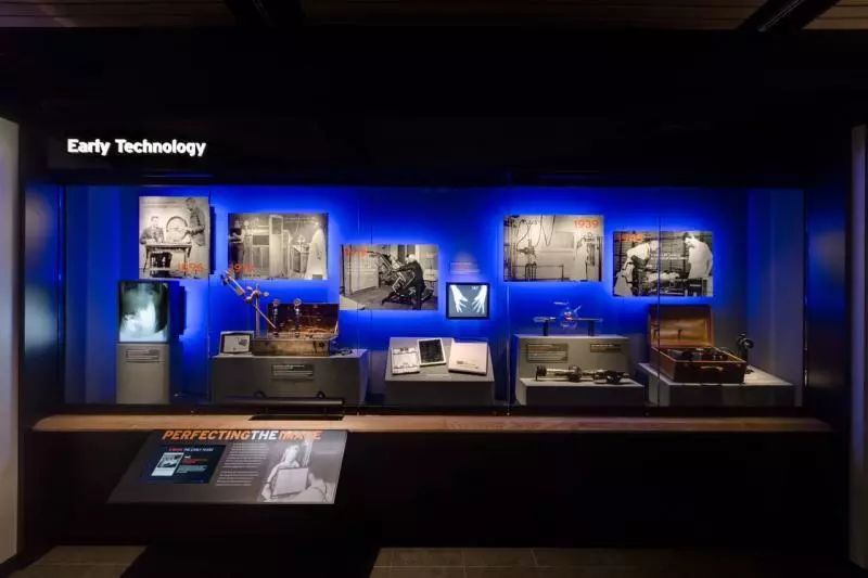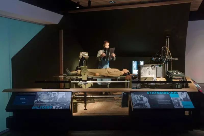 除了交互式組件外,還展出了許多老式設(shè)備,包括Picker透視裝置,1935 GE便攜式“手提箱模型”X射線(xiàn)裝置和第二次世界大戰(zhàn)的軍用X射線(xiàn)裝置。展出了300多件文物。
