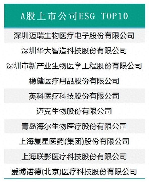 中國醫(yī)療器械A(chǔ)股上市公司ESG TOP10